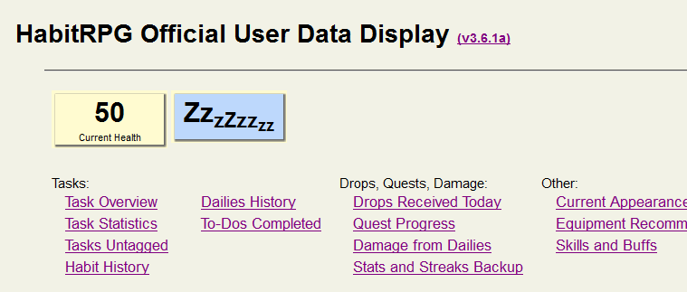A webpage, maintained by a Habitica mod, that shows you certain information from your Habitica account, including: