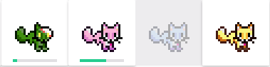 A pet's Food Bar shows its progress toward becoming a full grown mount. Pictured are two Lion pets without Food Bars (a re-hatched White Lion pet and a Shade Lion recently raised to a mount) and Base, Desert and Red Lion pets with Food Bars.