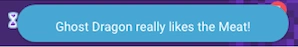 A notification indicating that a pet was fed its preferred food (in the case of a magic potion pet, any food)