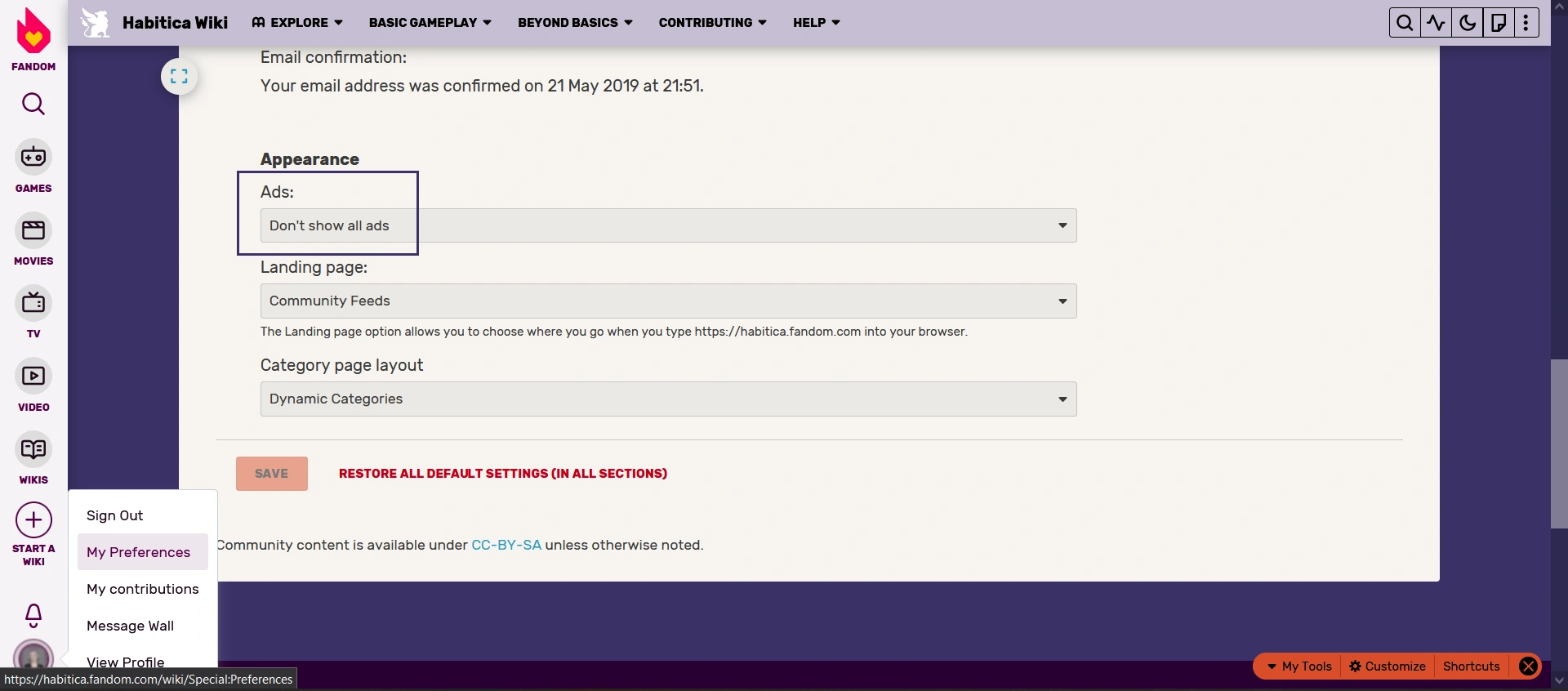 Disabling Ads on the Wiki