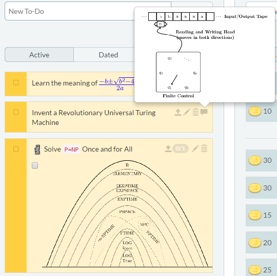 Progress bars can be incorporated in Habitica to display the relative progress for each Habit, Daily, Task (or even each checklist item), or Reward as well as the rest of Habitica where Markdown is supported. Check out the project page for more usage examples. | |