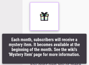 For the entirety of the month, the month's box will appear in the Special section of the Inventory for all players who are subscribed. Once the month's mystery item has been revealed, players can click on this box to add its contents to their Equipment section.