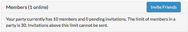 Note that for parties with more than 30 members, the website header will only show 30 party members. Additionally, none of the header sorting options will cause a different set of players to appear in the header. While parties are now limited to 30 members, the change was grandfathered in, so parties larger than 30 still exist. See Party Size for more information on the effects of large parties.